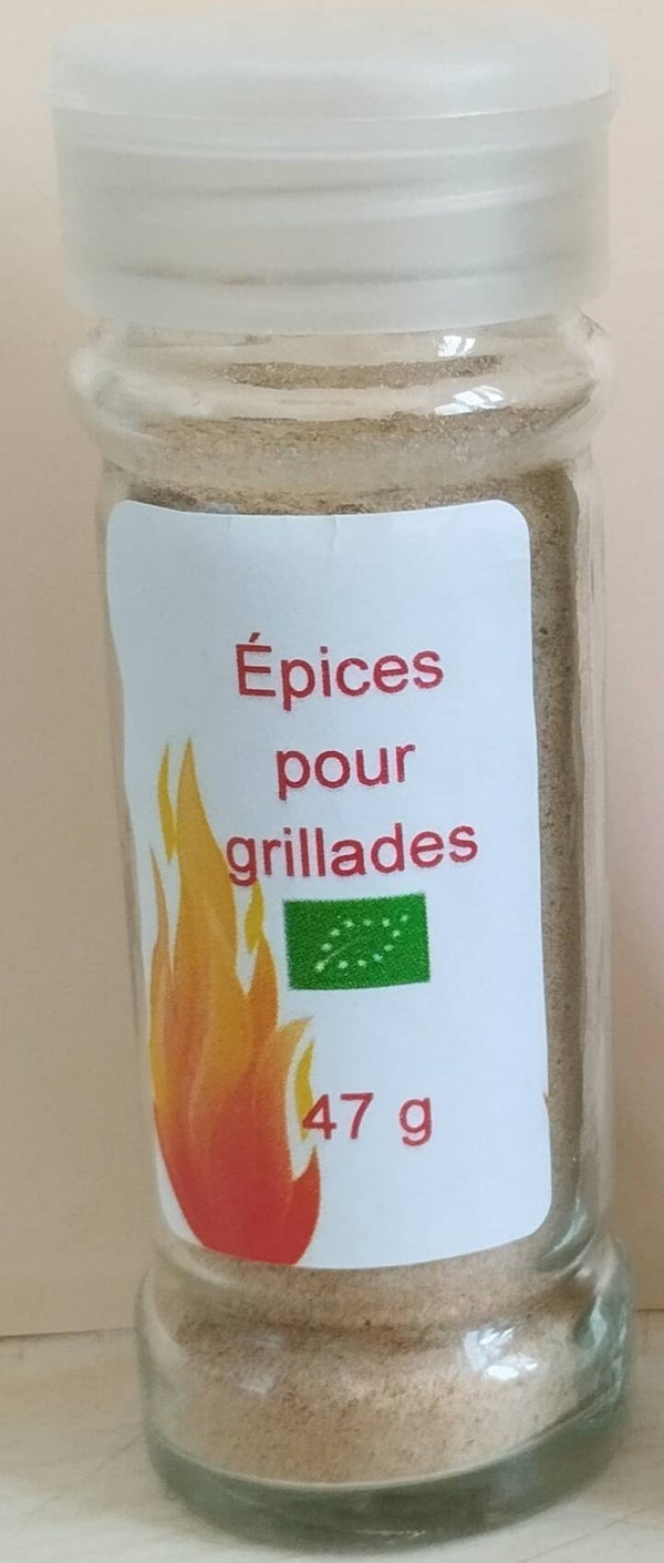 Mélange pour grillades - 47g : oignon, ail, feuilles d'olivier, coriandre, cumin, piment, paprika fumé, poivre noir, sel marin fin, poivron, romarin